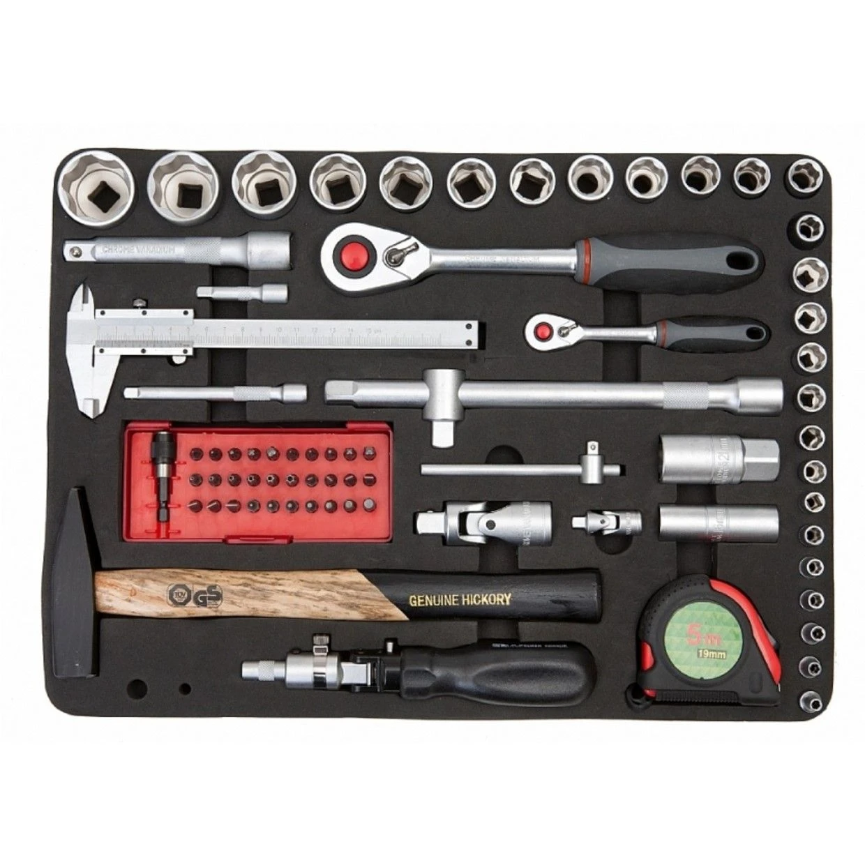 Het gereedschap is gemaakt van chroom vanadium, benaming voor de staallegering. De gereedschapskoffer is gemaakt van aluminium en is afsluitbaar. De koffer is verdeeld in vakken voor een zo goed mogelijke verdeling van de 127 gereedschap stukken en bestaat uit: