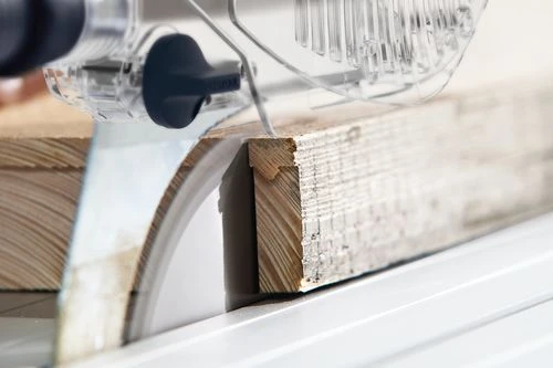 Afkortzaagsnedes tot 320 mm breedte precies en snel door het trekken van het zaagblad