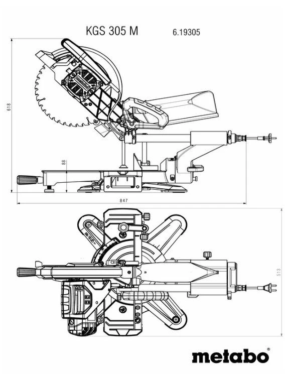 Zaagvermogen 90°/90°: 200 x 80 mm